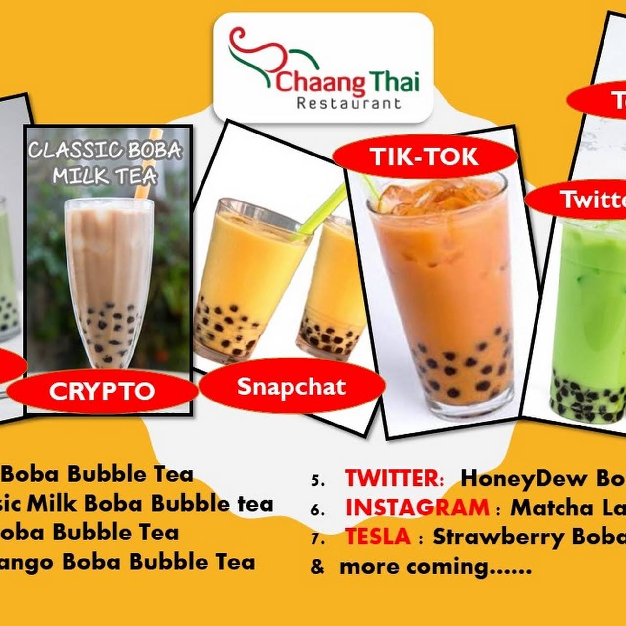 Web Online menu for Chaang Thai Restaurant in Morgantown WV - Order now.